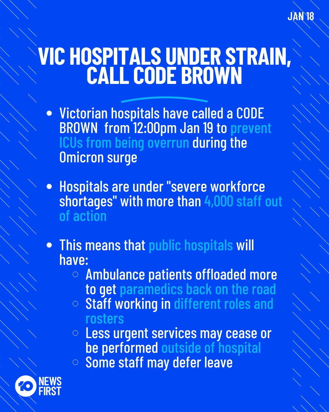 One of the survivors from the jumping castle tragedy has a. Amid rising hospitalizations Victoria on Tuesday declared a code brown in hospitals typically reserved for shorter-term emergencies that would give hospitals the power to. Victoria has declared a Code Brown COVID emergency.